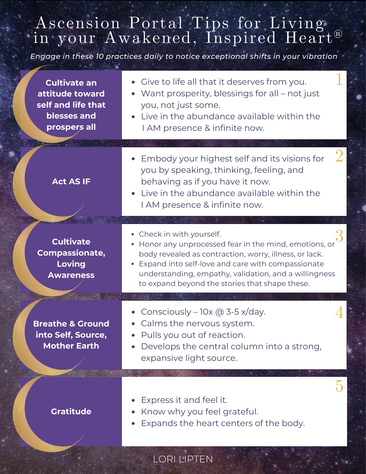In addition to Inspired Hearts, I support Lori Lipten’s Intuitive Practitioner Certification programs and supplemental retreats.