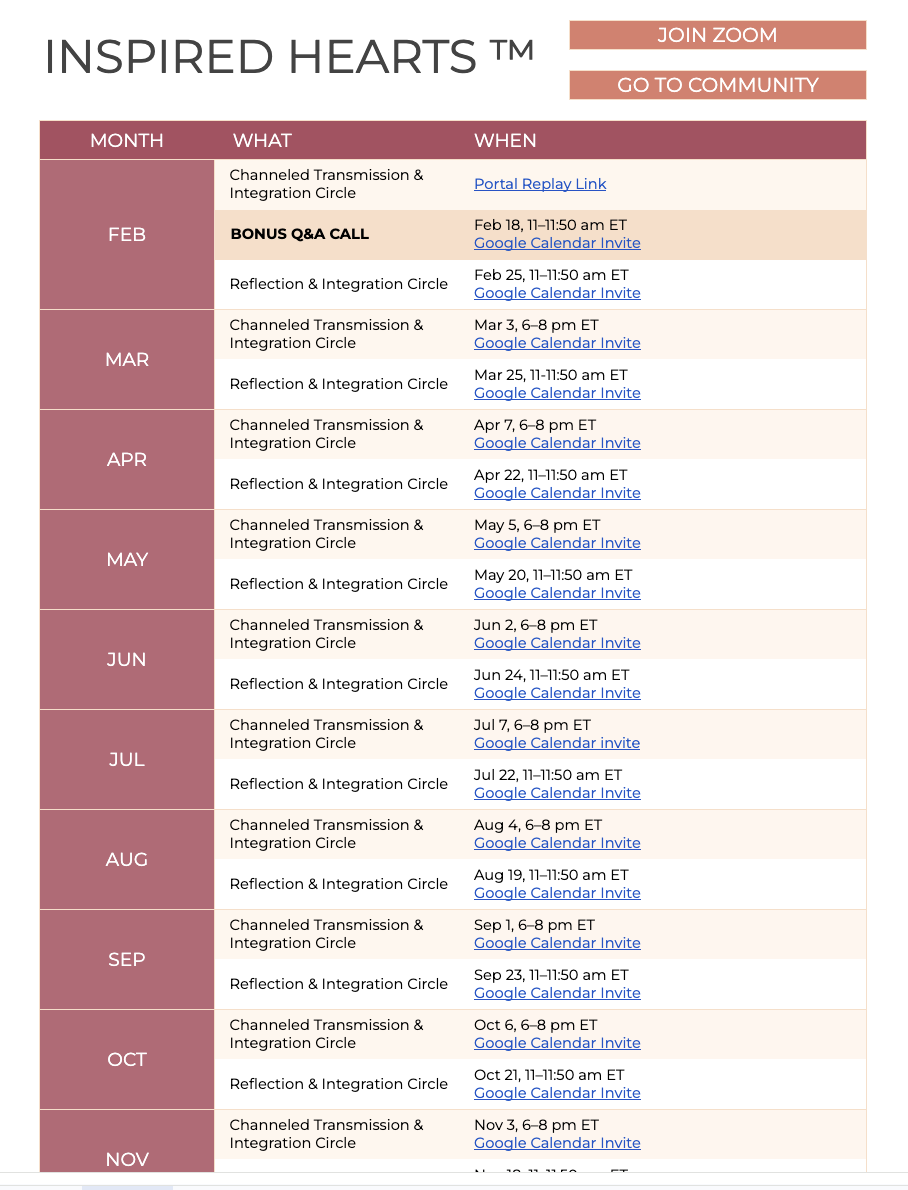 Inspired Hearts is an ongoing spiritual membership led by Lori Lipten, where live transmissions, community connection, and integrated content support members’ continued growth. I steward the full member experience—content flow, community support, live call facilitation, and systems—so the work is held with care and consistency.