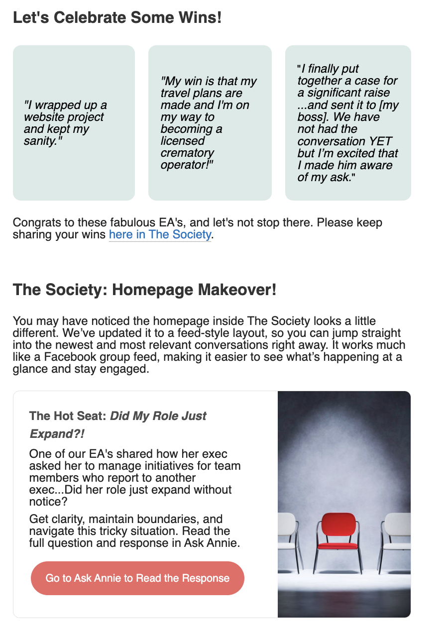The result is a grounded, engaged community where Executive Assistants don’t just learn new concepts—but begin to see themselves differently in their work and lives.